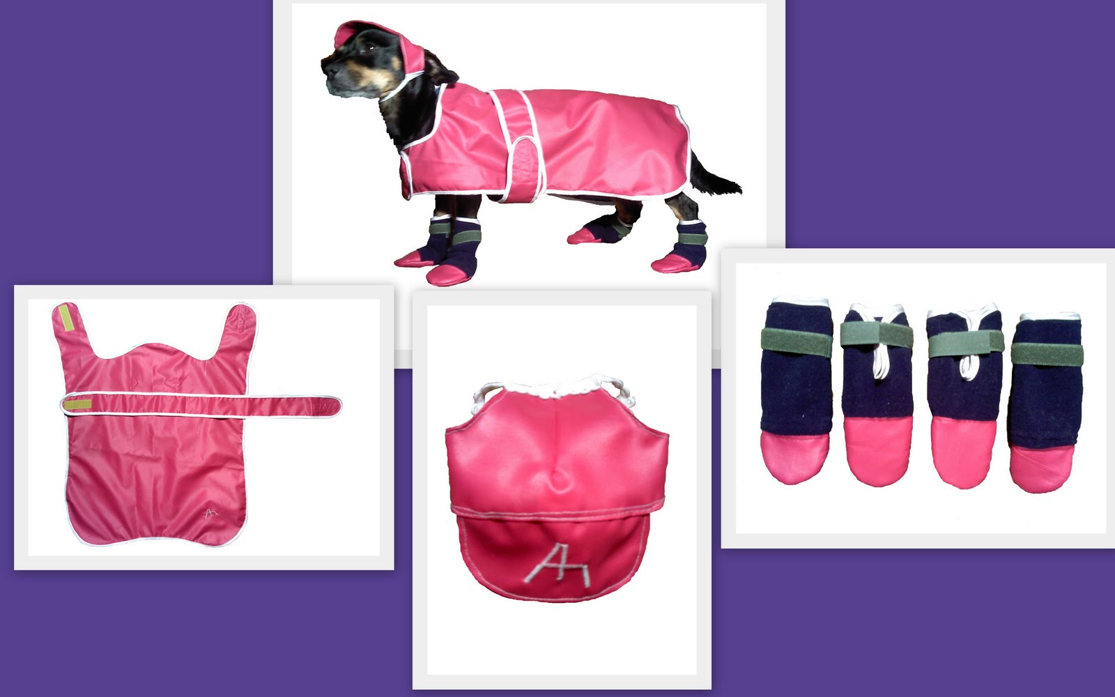 Vine toamna şi vin ploile. Pentru acest anotimp recomandăm pelerinele, hăinuţele, vestuţele şi şepcuţele impermeabile cu cozoroc. Toate se confecţionează într-o gamă foarte variată de culori şi pe toate mărimile (25-80). Pentru o fixare bună, hainele au la picioruşele din spate şi la codiţă un elastic fin dar foarte rezistent. Pelerinele şi vestuţele se încheie cu un scai special, care nu agaţă blăniţa. Hăinuţa este în aşa fel croită  încât să protejeze şi pieptul şi  se încheie cu un şnur reglabil în funcţie de circumferinţa toracelui. Şepcuţele sunt croite astfel încât să nu deranjeze şi se fixează cu ajutorul unui elastic rezistent. Aceste produse te protejează de ploaie şi toate au preţuri promoţionale.