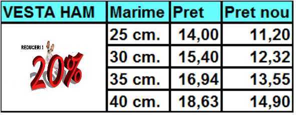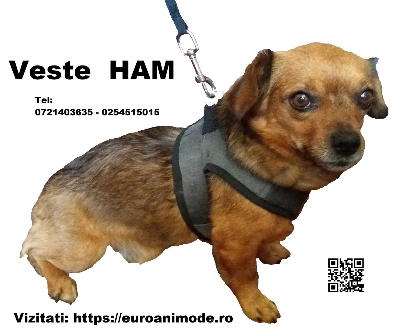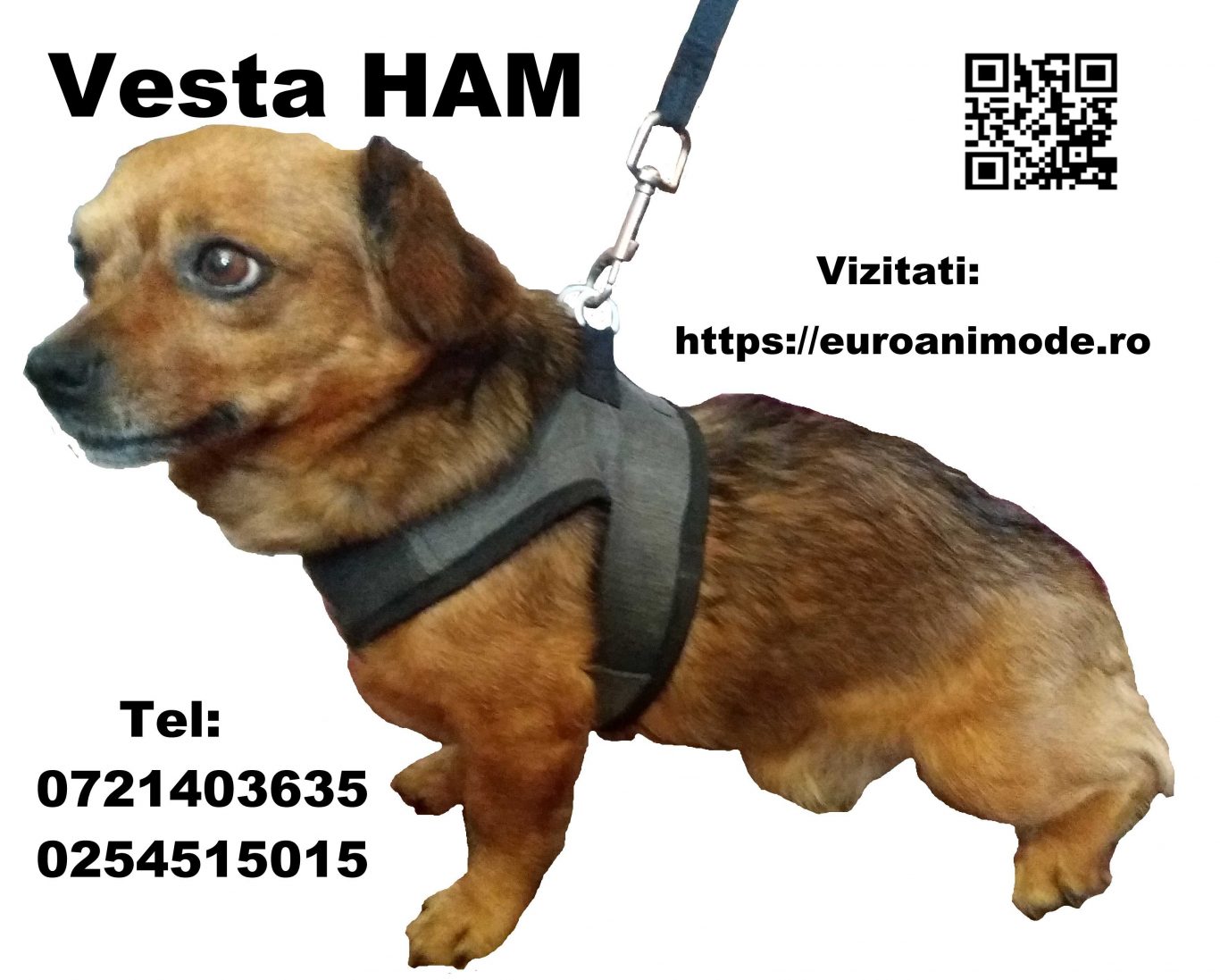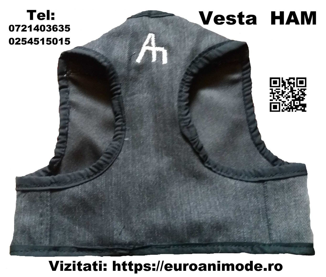 REDUCERE 20% ! Vesta HAM este confectionata dint-un material foarte rezistent ( denim ),este captusita cu diferite materiale subtiri, se incheie pe spate cu schai, si are 2 inele unde se pune lesa. NU TREBUIE HAM . Este foarte practica, eleganta, protejeaza, inlocuieste zgarda, si nu sugruma in cazul in care catelusul vrea sa fuga. Se confectioneaza pe 4 marimi ( 25 – 40 cm.). Pentru amanunte ( culoare, marime, pret, livrare, etc.) sunati la tel: 0721403635 – 0254515015. Vizitati: https://euroanimode.ro
