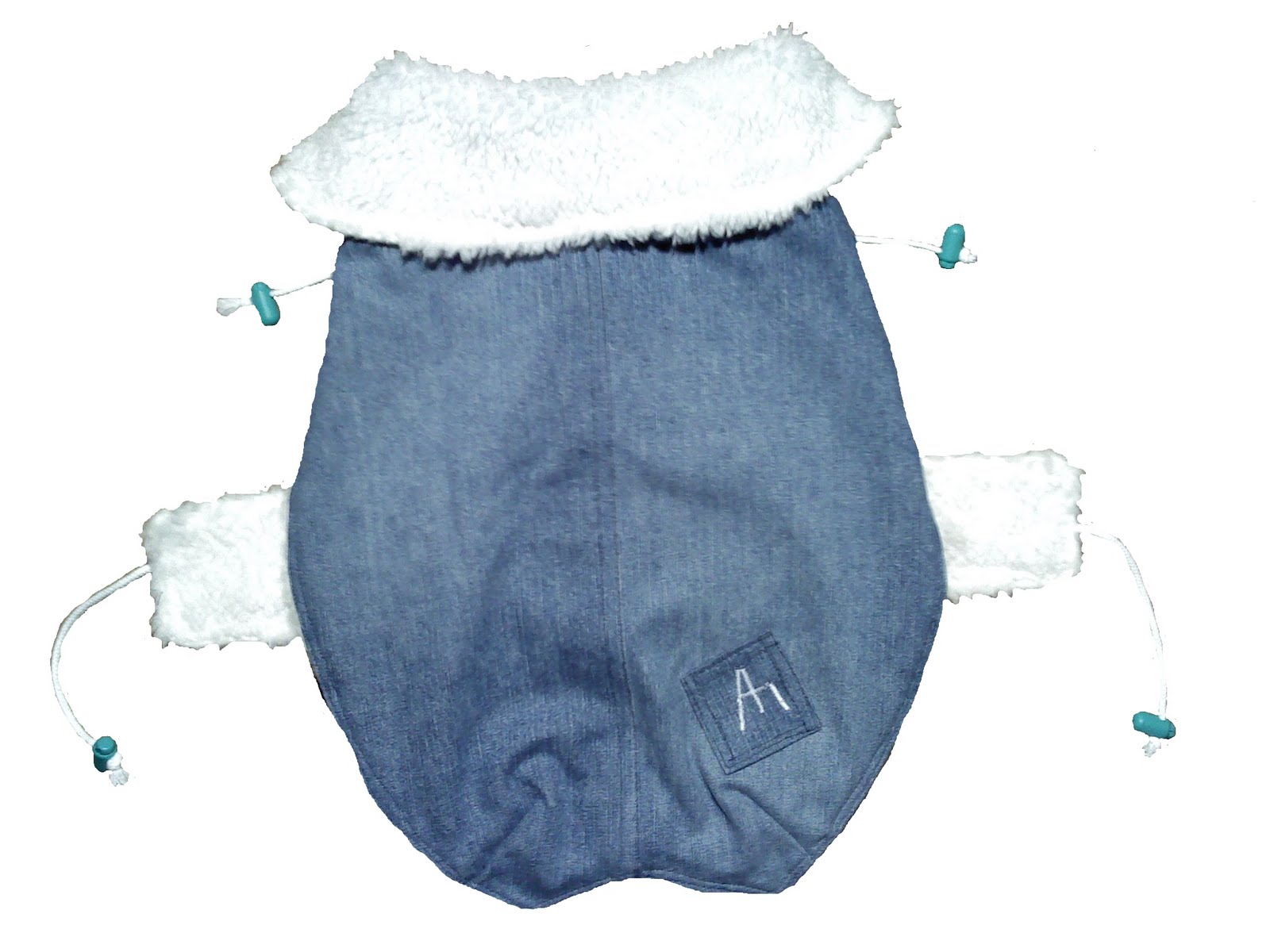 Este o hăinuţă confecţionată din material semi -impermeabil, matlasată în carouri, căptuşită cu vatelină statificată şi dublură din polar. Are aplicat un buzunăraş (pe care este brodată emblema firmei) şi în care se pot pune diferite jucării sau chiar un biscuit Padovan (ROYAL CANIN).