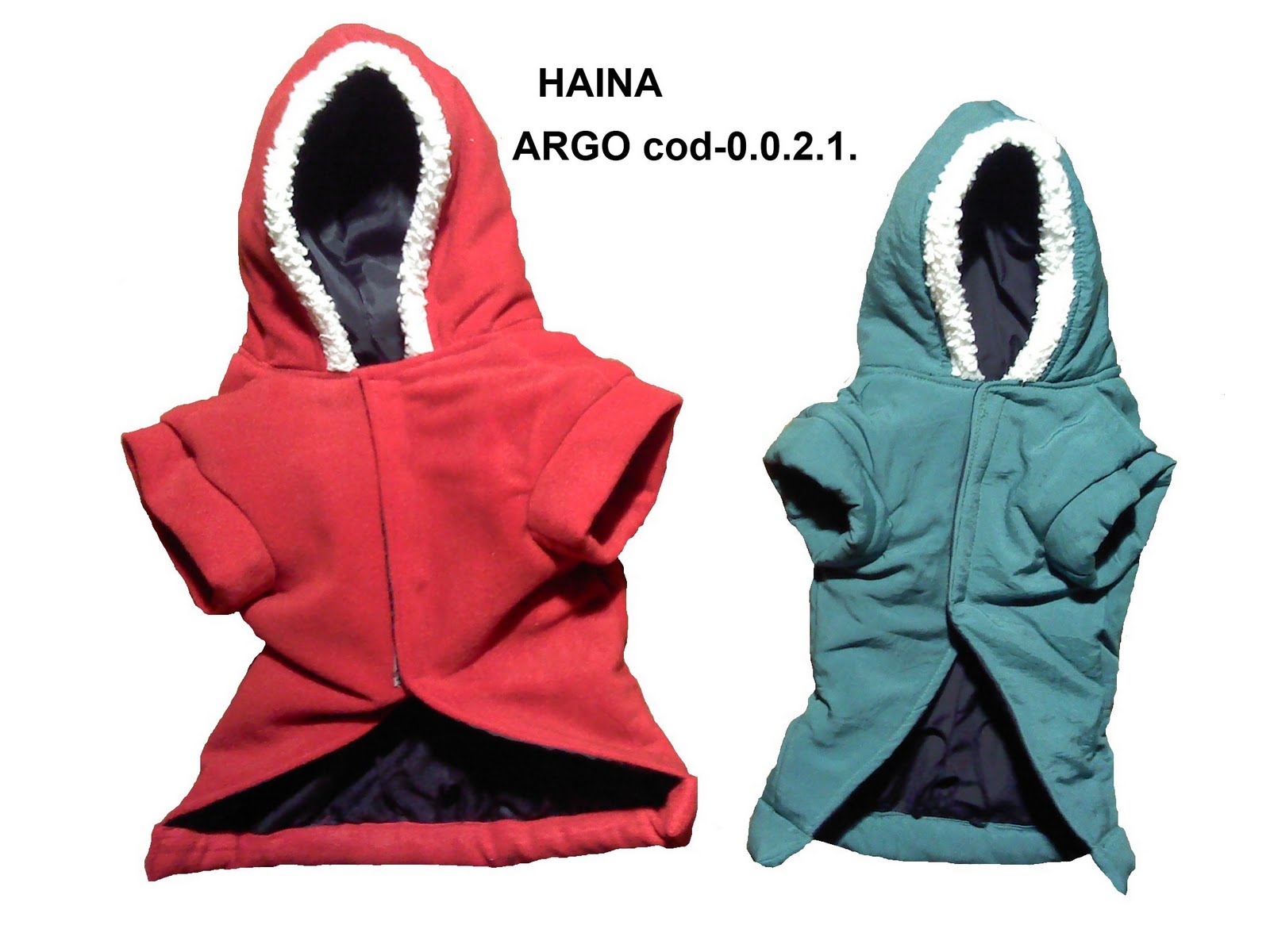 Haina ARGO cod- 0.0.2.1. Este o hăinuţă pentru anotimpul rece. Este confecţionată din materiale diverse (velur, stofă, doc, etc.), în diferite culori şi este căptuşită cu un material călduros. Se încheie pe piept cu ajutorul unui scai special, care nu agaţă blăniţa. Are o glugă, care, pe timp nefavorabil, protejează şi asigură confortul termic şi care este ornată cu o blăniţă artificială. Este în aşa fel croită încât să permită libertatea de mişcare şi să fie foarte comodă. Se confecţionează într-o gamă foarte variată de culori şi pe toate mărimile